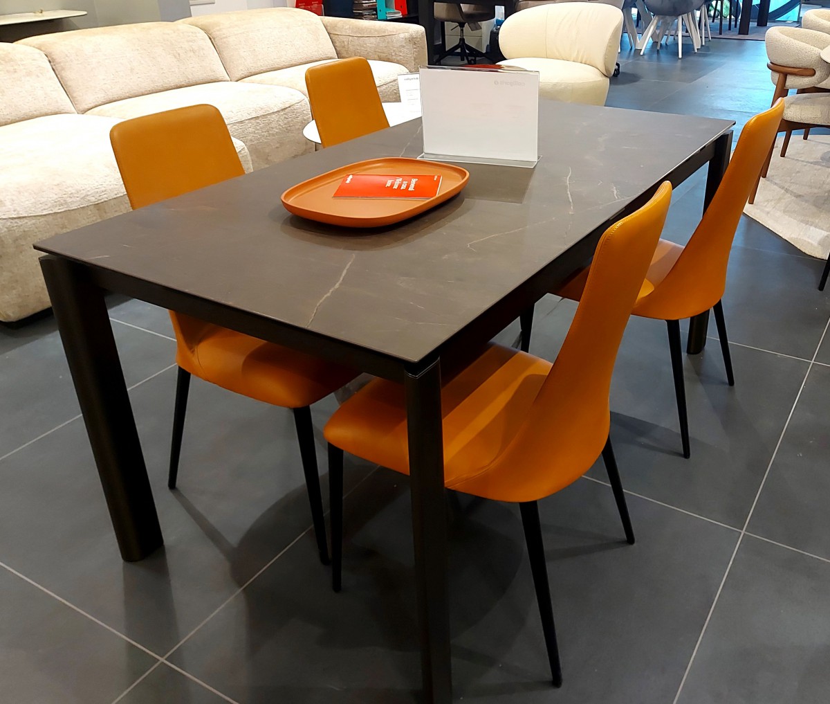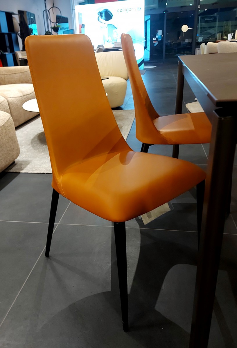 Stolica Etoile Calligaris kombinacija je metalnih nožica u boji matt black i umjetne kože u cognac boji. Izražena cijena je za 1 izložbeni primjerak stolice. Dostupna su 4 komada.
