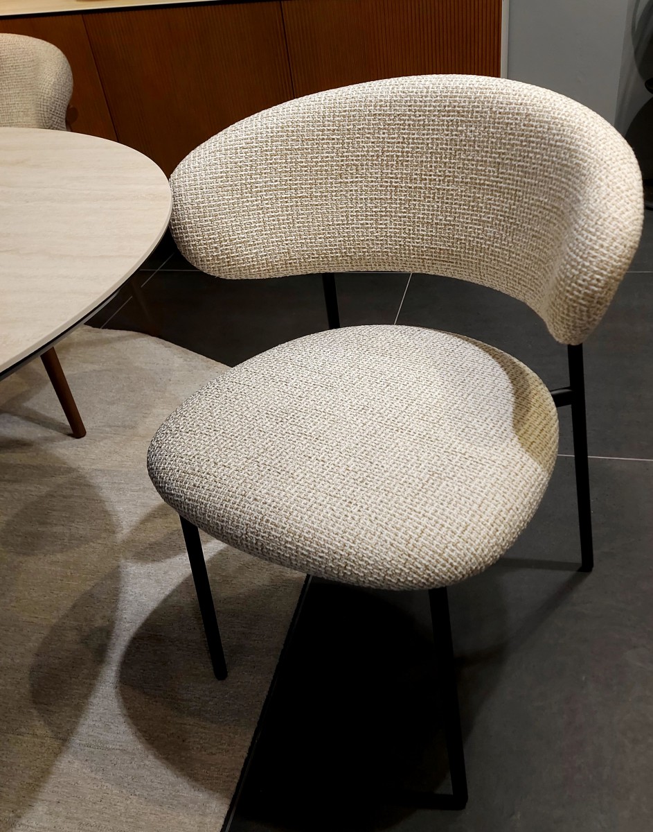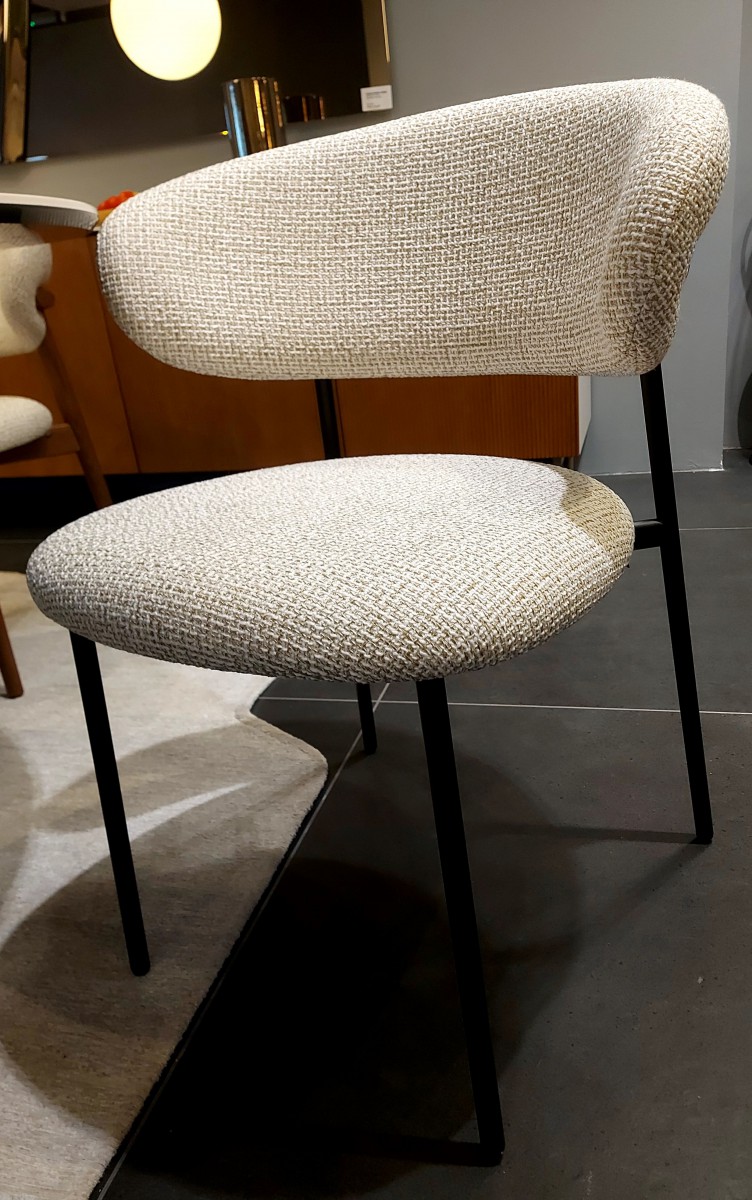Stolica Oleandro Calligaris kombinacija je metalnih matt black nožica i boucle bež tkanine. Izražena cijena je za 1 izložbeni primjerak stolice. Dostupna su 2 komada.